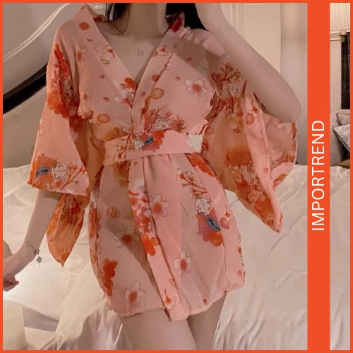 Unleash your inner seductress with this Sexy Japanese Kimono Lingerie designed to make you feel confident, alluring, and irresistible. With its deep V neckline and elegant yet provocative design, this piece blends sensuality with traditional charm, making it perfect for special nights, cosplay, or nightclub events.