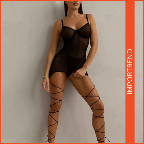 Embrace your bold and confident side with this seductive plus-size mesh lingerie set. Designed to highlight your curves, this sheer perspective dress features a steel ring gathered bust for enhanced support and shaping. The matching gloves and leggings add a touch of elegance, while the included rope detail adds a playful, daring element. Perfect for special nights, roleplay, or when you want to feel irresistibly sexy.