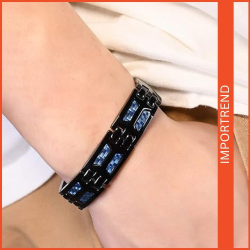 ⚡ Strength, Style & Wellness – All in One Bracelet! Designed for those who appreciate modern elegance with a touch of innovation, this Titanium Steel & Carbon Fiber Magnetic Bracelet combines premium materials, durability, and wellness benefits. The lightweight yet sturdy titanium steel provides a sleek, polished look, while the carbon fiber accents add a contemporary edge. Featuring built-in magnetic therapy, this bracelet may help promote better circulation, relaxation, and pain relief.
